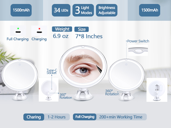 - 3 Color Modes: Choose from white, natural, and warm light to achieve the perfect makeup look.