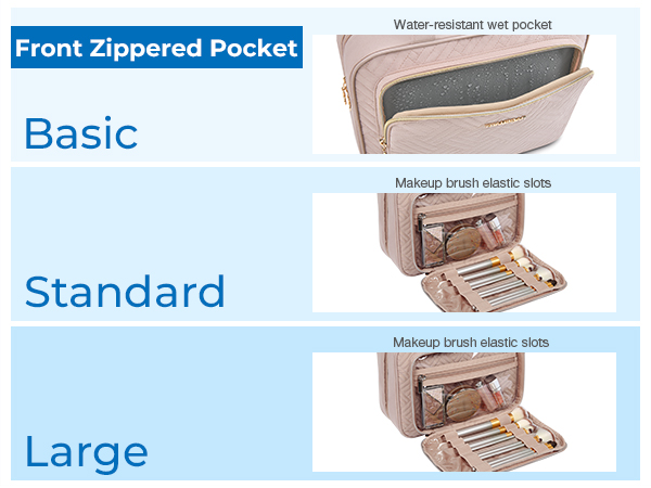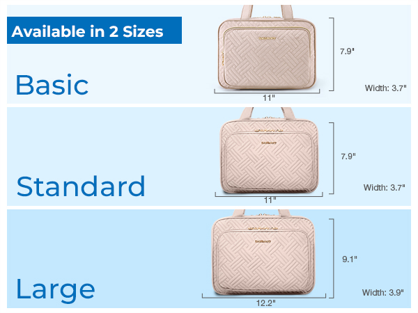 - Large Capacity: Medium size: Rolled – 11” x 3.7′ x 7.9′; Large size: Rolled – 12.2” x 4′ x 9′. 4 compartments with 1 TSA-approved cosmetic bag