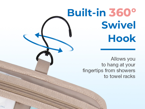- Convenient Design: Stow-away 360-degree swivel metal hook for hanging options; carry handle doubles as hanging strap; two-way zipper closure for quick access
