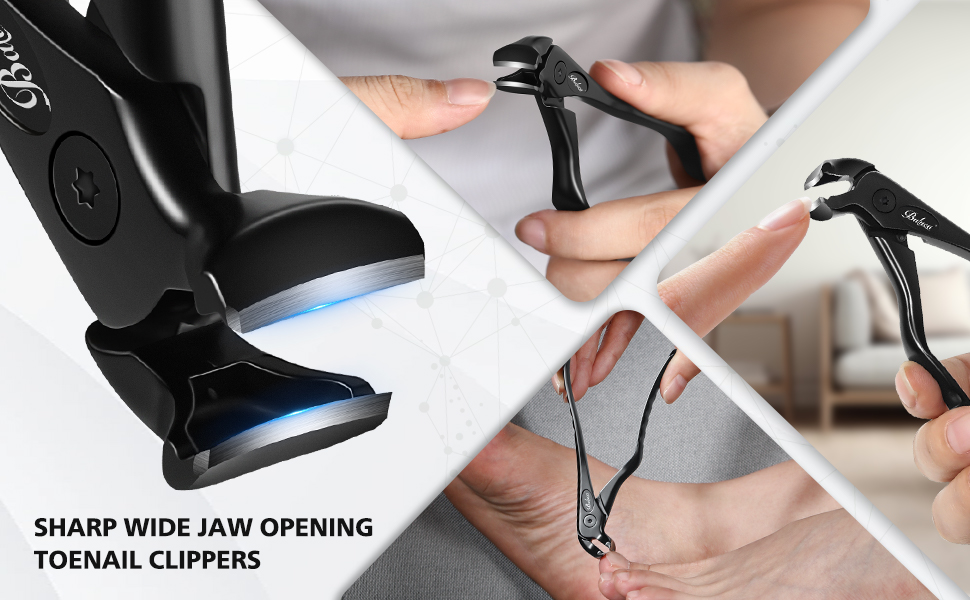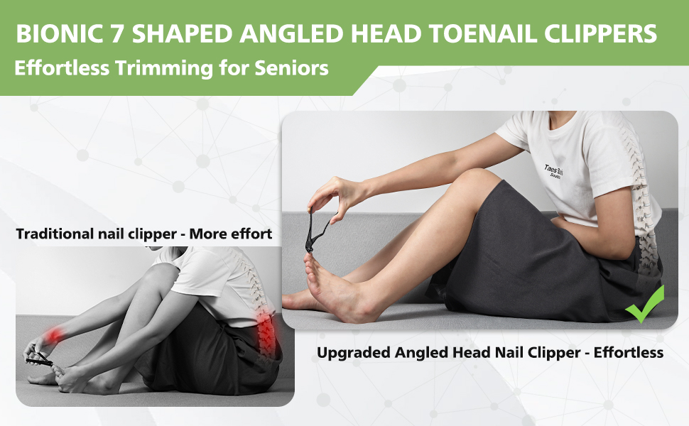 Humanized & Effortless Design Ergonomic Design: The long handle is inspired by leverage, allowing you to save a lot of effort. It can reduce the pressure needed so you can effortlessly cut hard and thick nails. Widely Application: With thick or ingrown toenails, this nail clipper is your best choice. It is suitable for men or women with hard nails, especially for the elderly. Less Bending, More Comfort! This unique design allows the trimmer to bend less when cutting toenails, providing a more relaxed trimming experience. A Clear View When Trimming Toenails. The curved head also offers a clear view of the area being trimmed, ensuring precision and reducing the risk of accidental cuts. Warm Tips The nail clipper set is pointed, please keep it away from children and use it with caution. Cut small portions of nails at a time, do not use the entire blade to trim nails. Do not over-trim your nails, i.e. do not cut as short as the tip of your fingernail or toenail. After each use, just wipe it clean with water and store for future use.