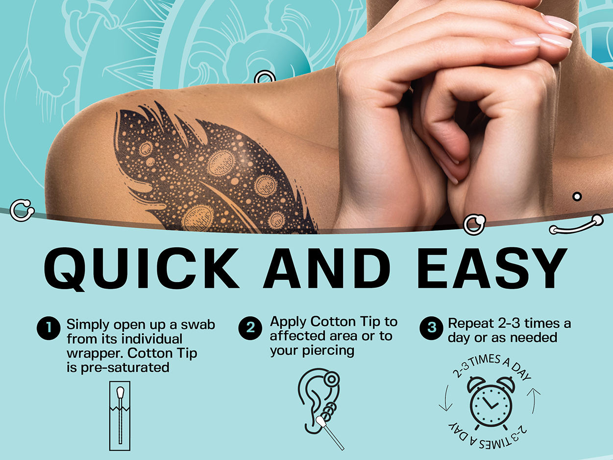 These gel swabs are suitable for ear, nose, belly, dermal, lips, and nipple piercings.