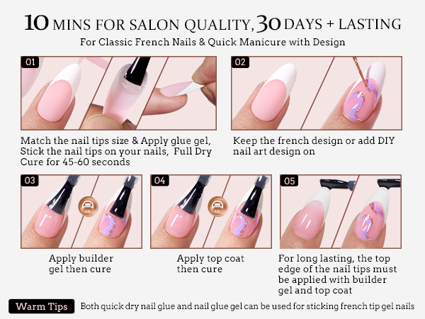 - Convenient Application: Use with glue, builder gel, and top coat.