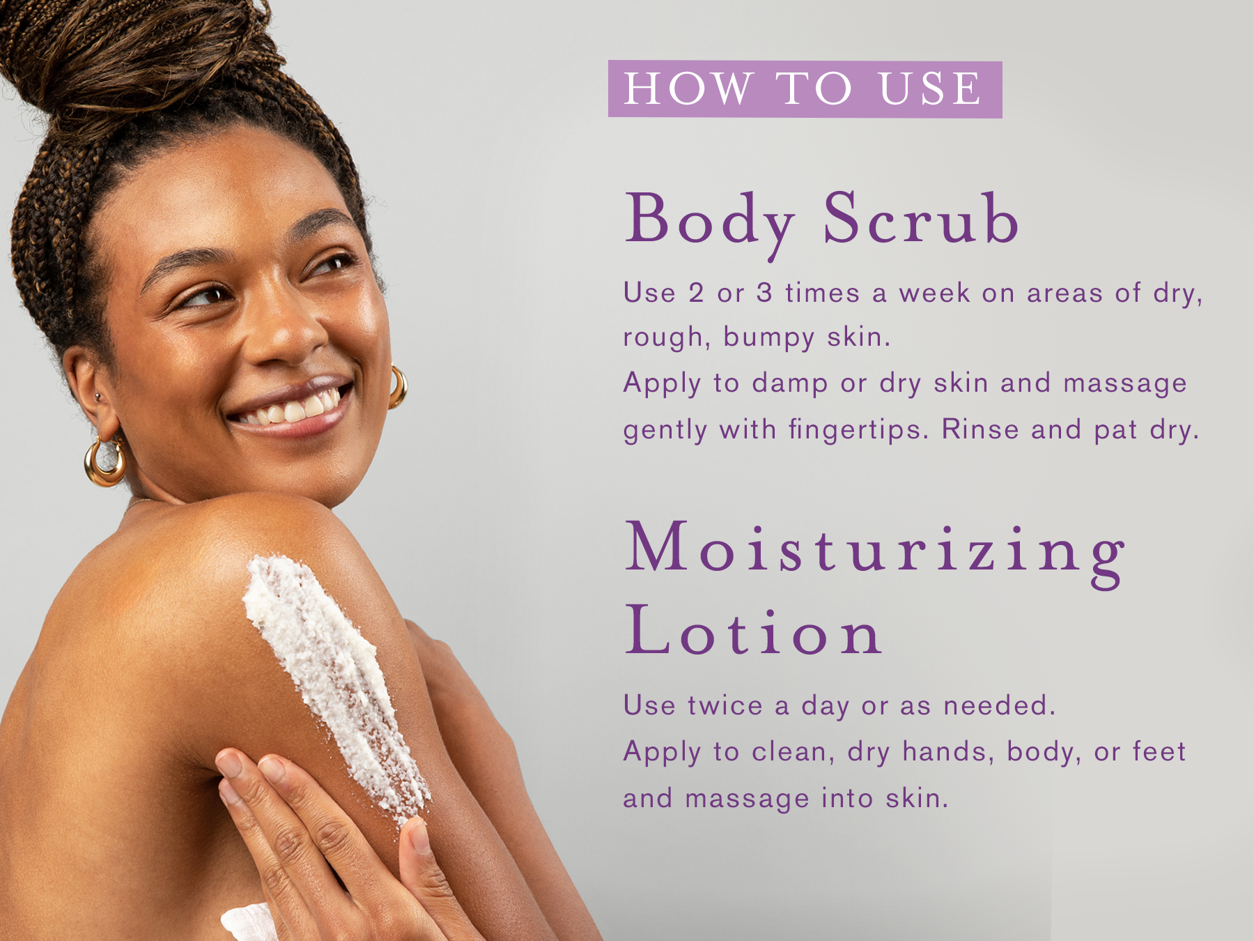 Combines exfoliation and deep hydration for dry, rough, bumpy skin. - Feature: Skin Care Solution