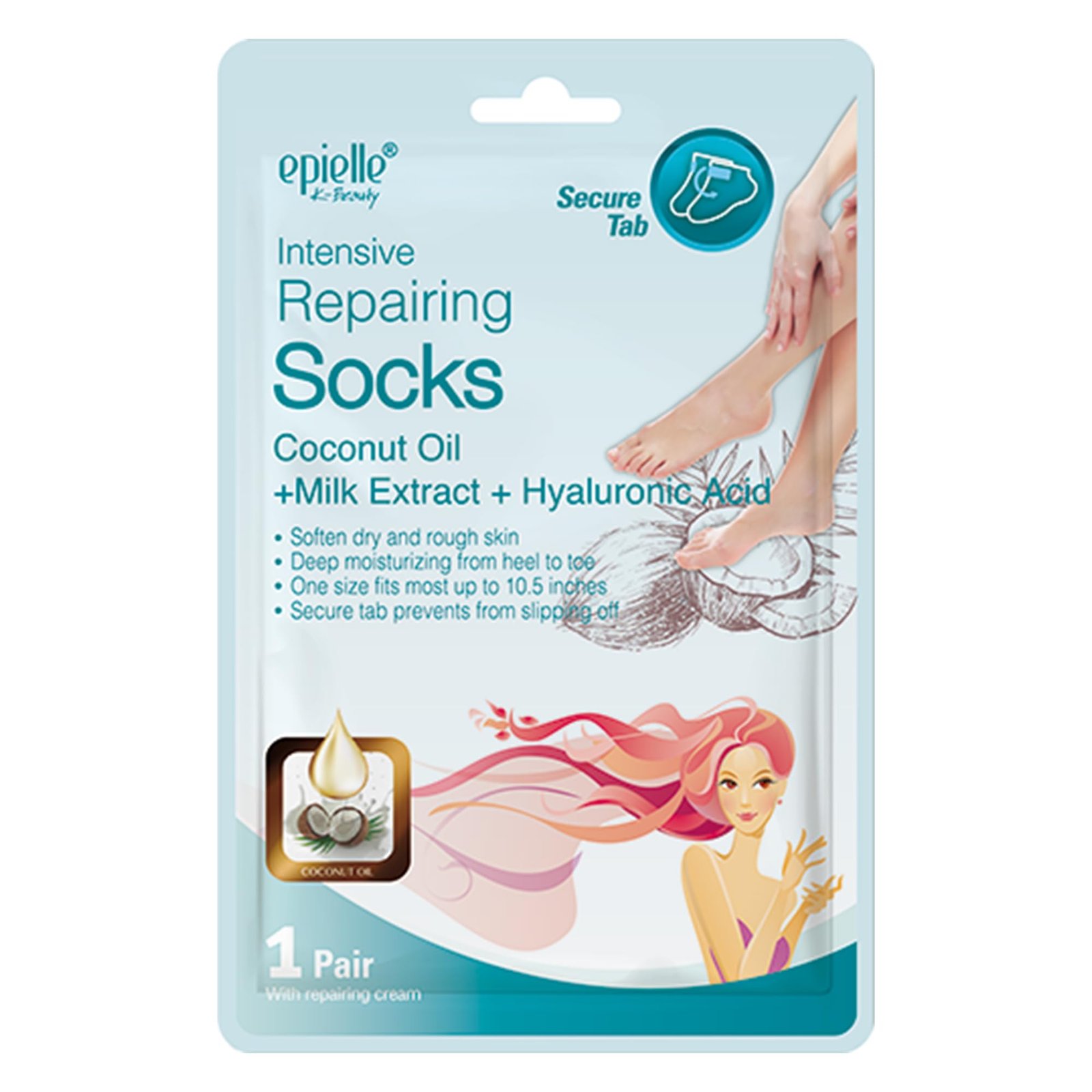 Revitalize hands and feet with Epielle Hand & Foot Masks. Each pack contains 6 pairs of gloves and socks infused with coconut oil and milk extract for intensive repair of dry hands and cracked heels. Enjoy Korean skincare benefits with this at-home spa treatment to nourish and hydrate for soft, smooth skin. Perfect for a pampering self-care routine.