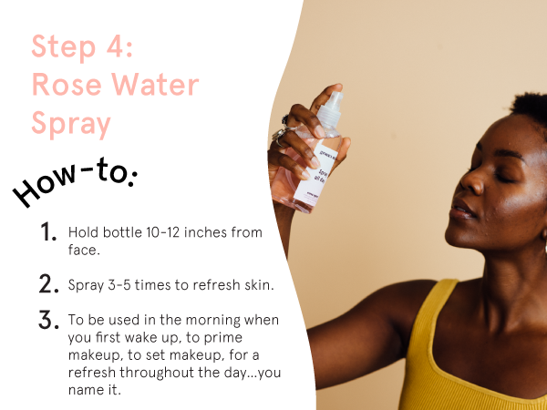 Draws out pore-clogging impurities while maintaining the skin’s moisture levels. Peptides keep skin looking firm and supple while smoothing visible fine lines. Shea Butter packed with fatty acids and vitamins to nourish, soften, and deeply hydrate skin. Niacinamide protects the skin barrier, helping to retain moisture and boost feelings of skin firmness. Hyaluronic Acid restores skin and locks in moisture while defending against environmental stressors and pollutants. Rose Water Spray helps to tone, prime, moisturize, hydrate, and refresh your skin.