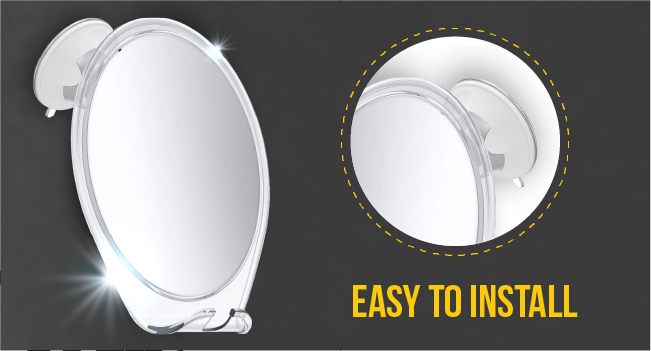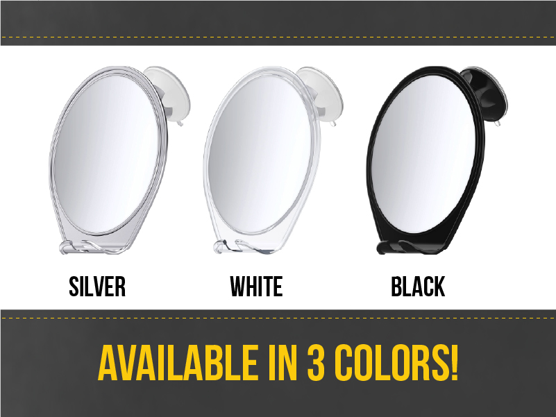 The Shower Mirror is coated with anti-fog film to maintain clarity. Features a strong suction cup, 360-degree swivel, built-in razor hook, and wider compatibility for a hassle-free grooming experience!