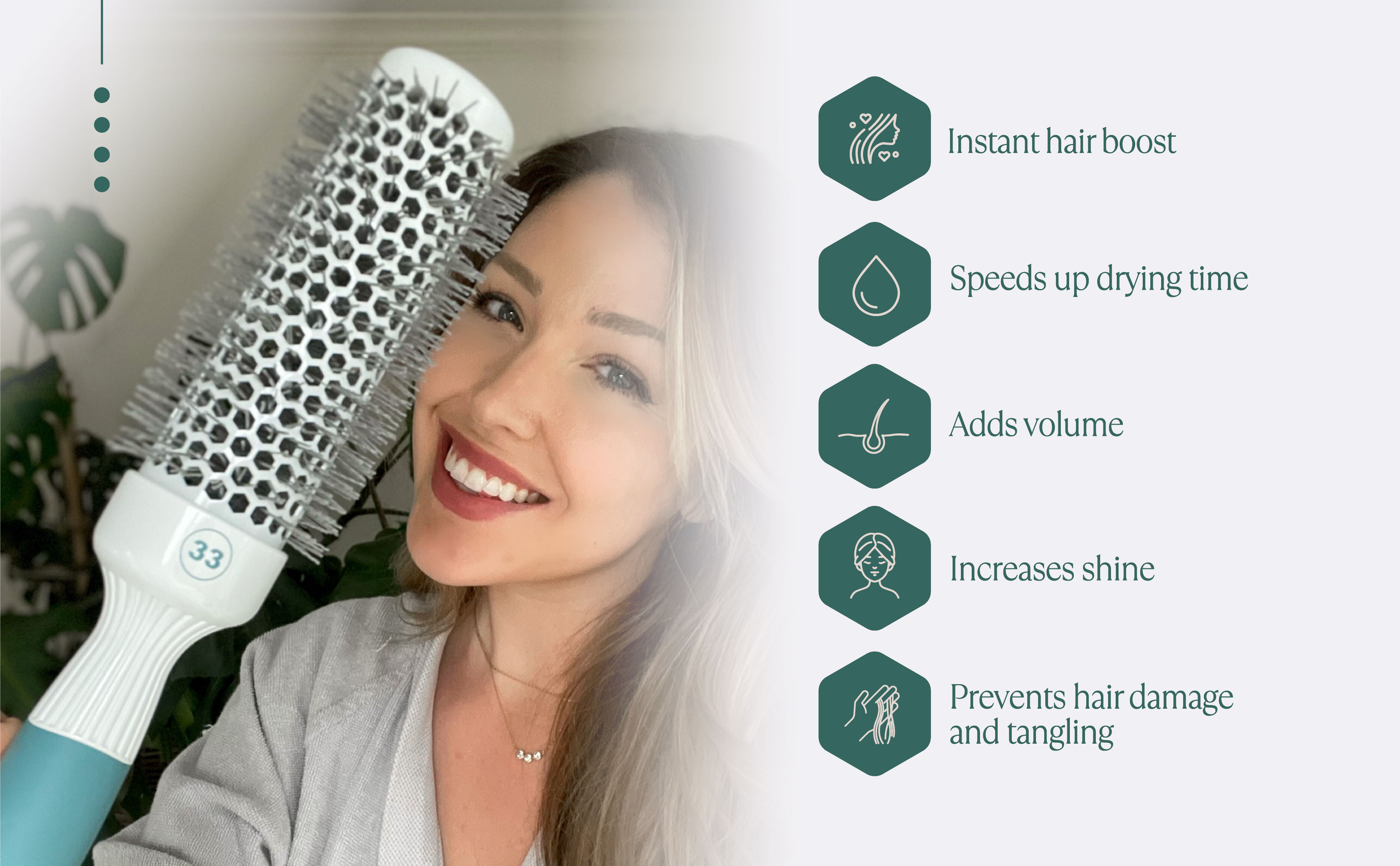 - Marvelous Ionic Bristles: Enjoy shiny, voluminous hair with antibacterial bristles.