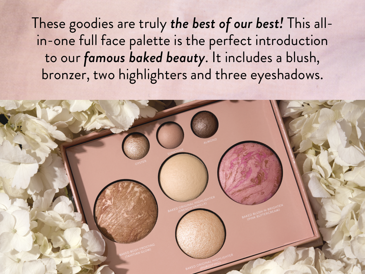 - Includes: Blush, Bronzer, Highlighter, Eyeshadow