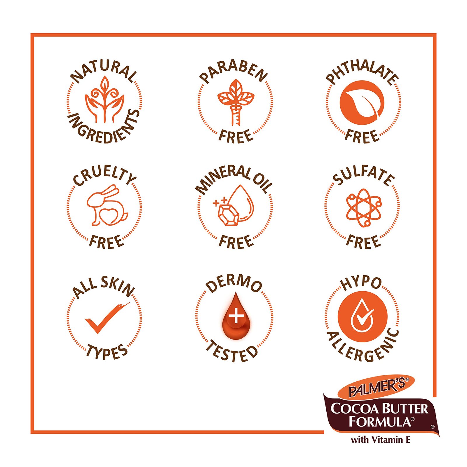 Palmer’s Cocoa Butter Formula Massage Cream is a concentrated formula ideal for stretch mark prone areas like the tummy, hips, thighs, and bust. It’s rich in Cocoa Butter, Shea Butter, Natural Oils, Collagen, Elastin, and Lutein, keeping the skin moisturized and supple for 48 hours.
