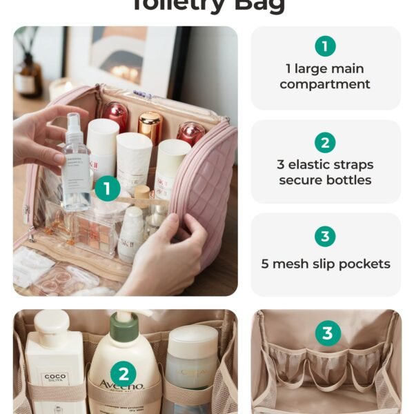 - Practicality: Fits full-size and travel-size toiletries
