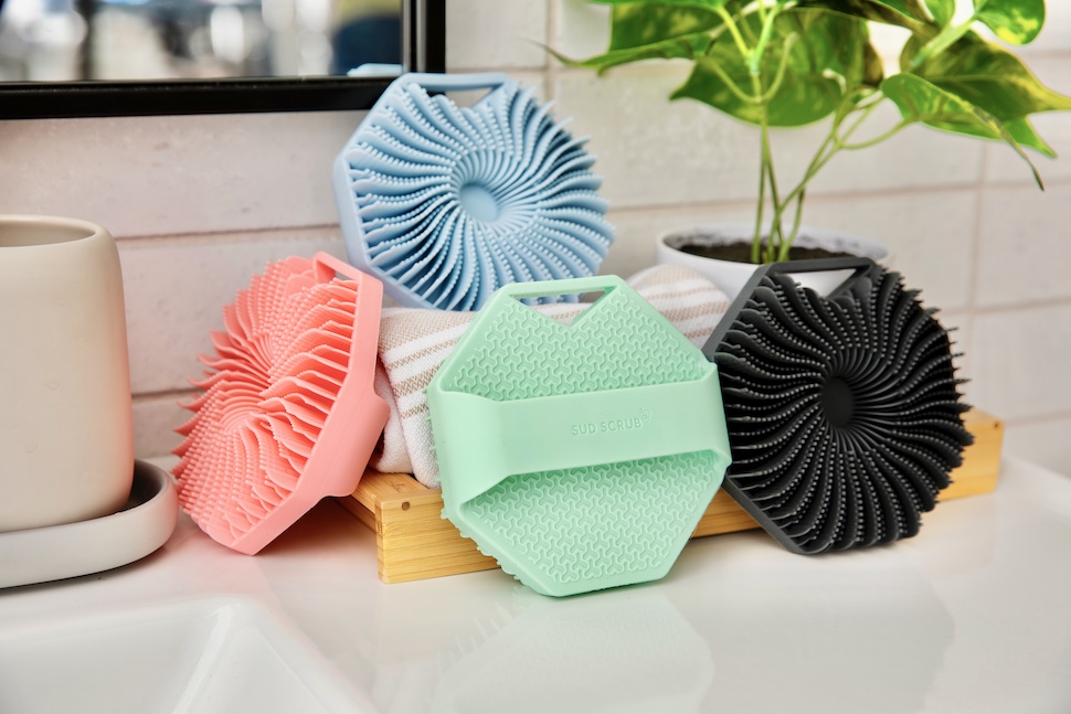 DEEPER CLEAN One-of-a-kind scrubbing fins gently remove trapped oil and dead skin to reveal softer, healthier skin. Suitable for sensitive skin. ANTIMICROBIAL Ditch the stinky loofah. This silver and zinc-infused silicone scrubber resists over 99% of odor-causing bacteria, mold, and mildew from growing on its surface. ULTRA DURABLE No more replacing your loofah every month. Sud Scrub lasts the whole year!