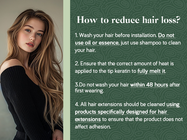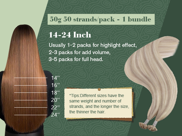 The video guides you through product setup. The video compares multiple products. The video shows the product being unpacked. video Merchant Video The video showcases the product in use. The video guides you through product setup. The video compares multiple products. The video shows the product being unpacked. video Merchant Video How to Apply U Tip Hair Extensions? 1.Divide the hair into upper and lower layers. 2.Place the extension at the bottom of the hair section you have selected. 3.Use a hot iron to heat the hair for 2-3 seconds until the glue melts. 4.Use fingers to blend your own hair with the extension. How to Deal with Konts? Comb the hair extensions with a wide-tooth comb, and make sure the hair extensions are dry. Please comb your hair slowly from bottom to top.