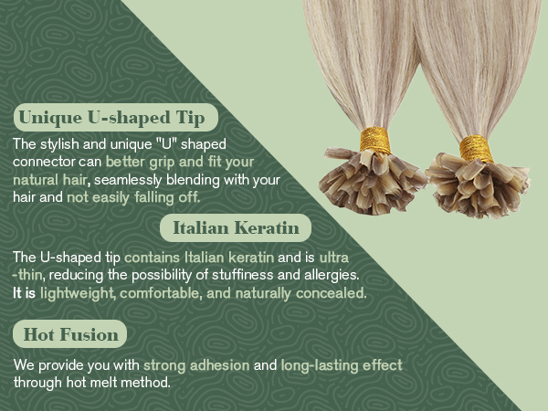 U-shaped Italian keratin adhesive provides a strong and reliable bond for seamless, lightweight extensions. - Feature: Sustainability Commitment