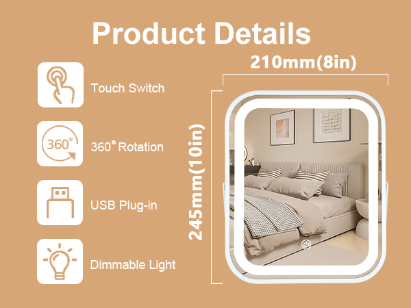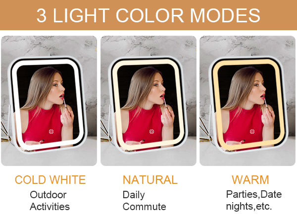 • Adjustable Brightness: Customize the perfect light for makeup, skincare, or hair styling.