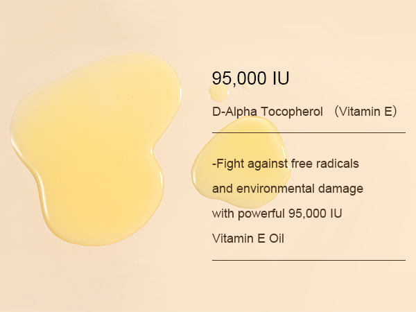 • 95,000 IU Powerhouse: High Vitamin E concentration for radiant skin.