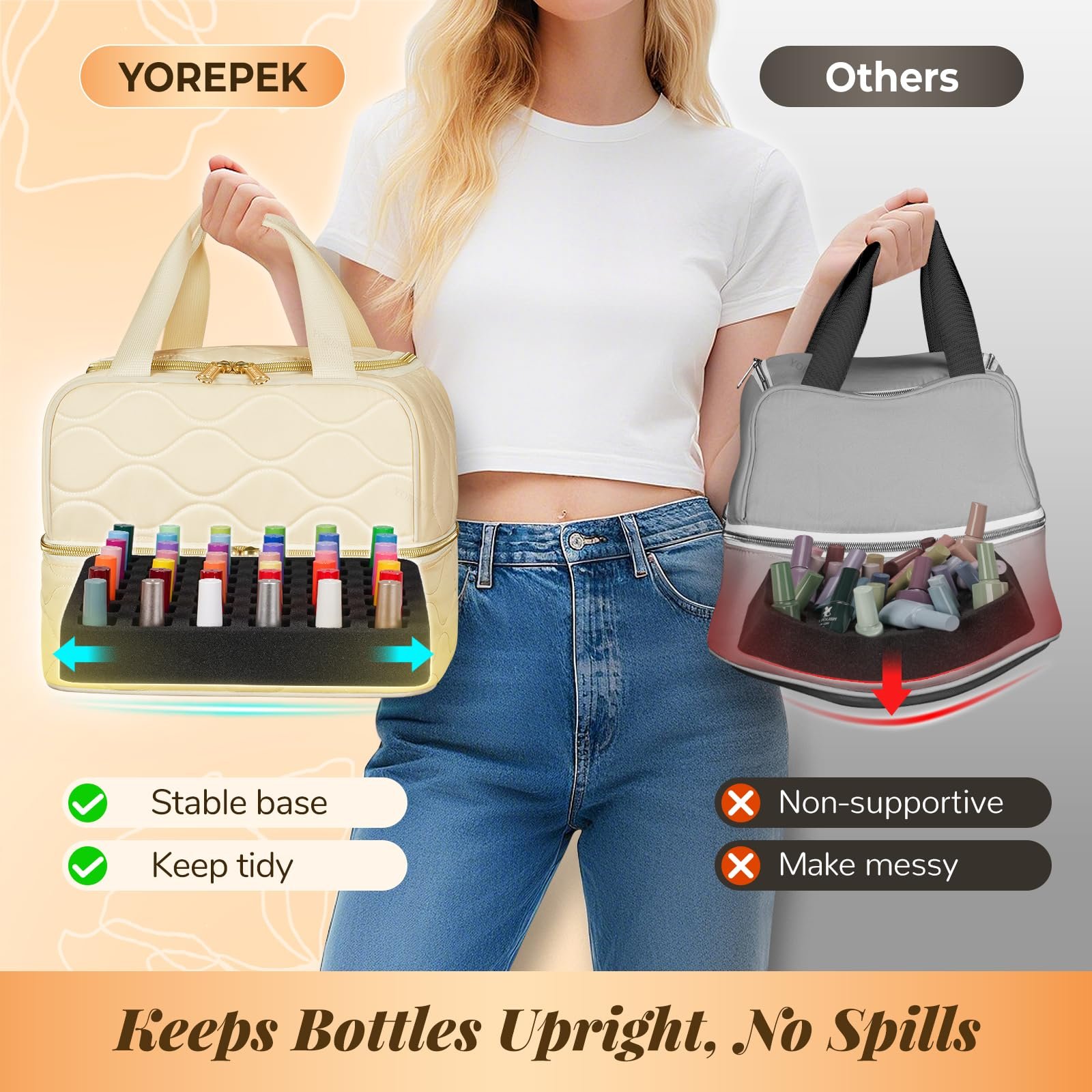 - Organized Storage: Fits 42 standard 15ml bottles, keeps them upright and protected. Zippered mesh pocket for tools.