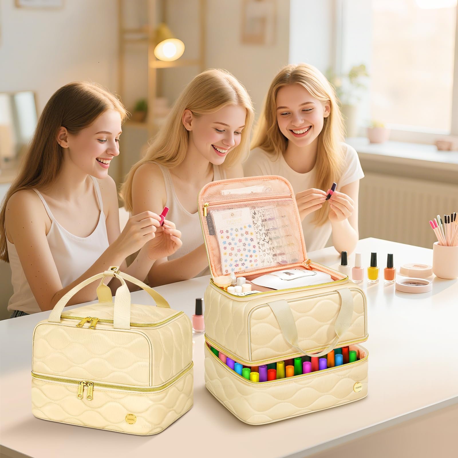 Keep your nail polish, gel bottles, and manicure or pedicure tools perfectly organized. Ideal for professionals, hobbyists, and beauty students. Features 42 individual slots for 15ml bottles, adjustable divider for UV nail lamp, and zippered mesh pocket for accessories. Crafted with quilted nylon and soft padding for protection on the go. Perfect blend of style and function.